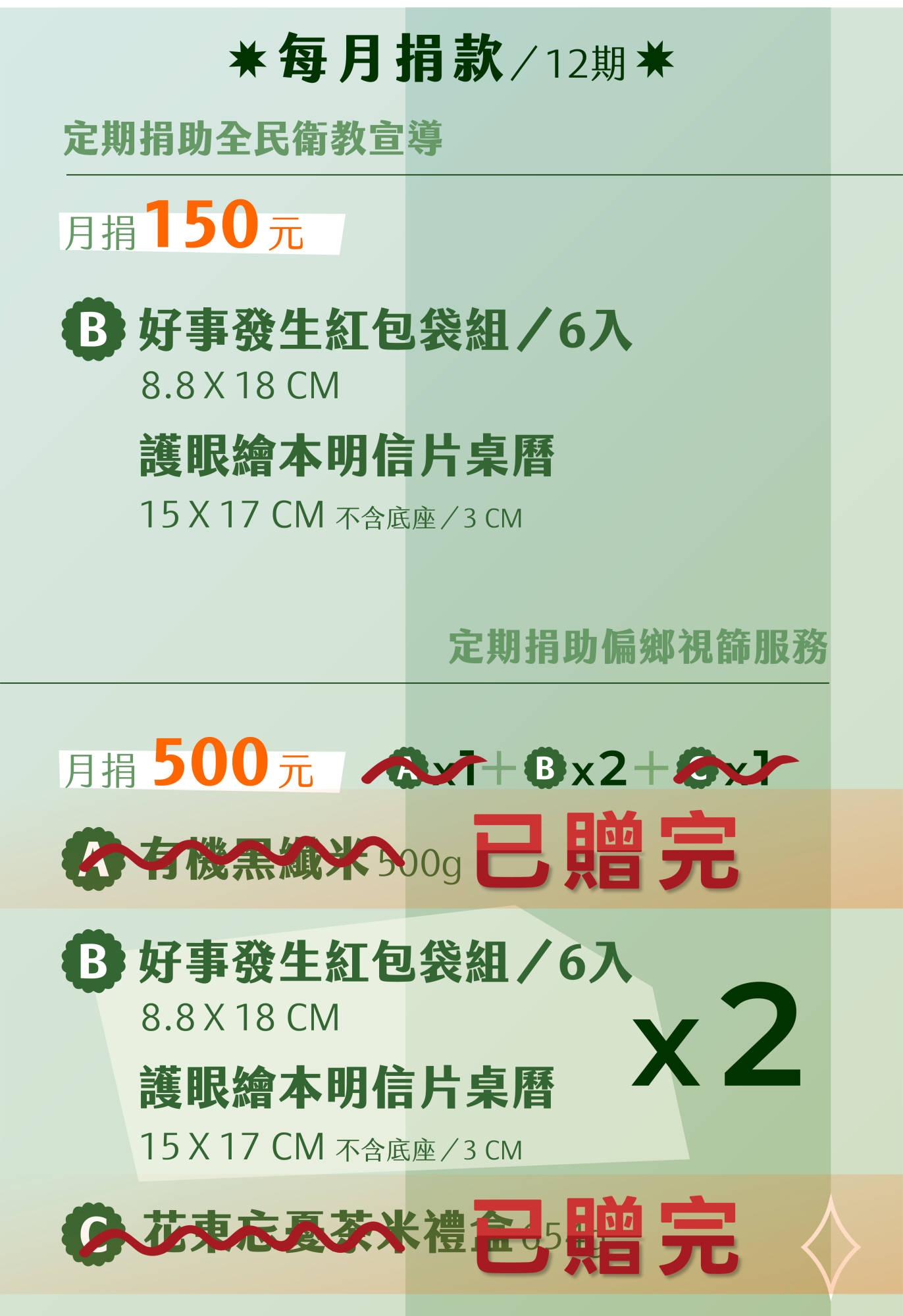✦ 感恩禮寄送時間 : 12/11 開始陸續寄送 ✦ 請留下「可收掛號的地址」(依捐款時間依序寄送)