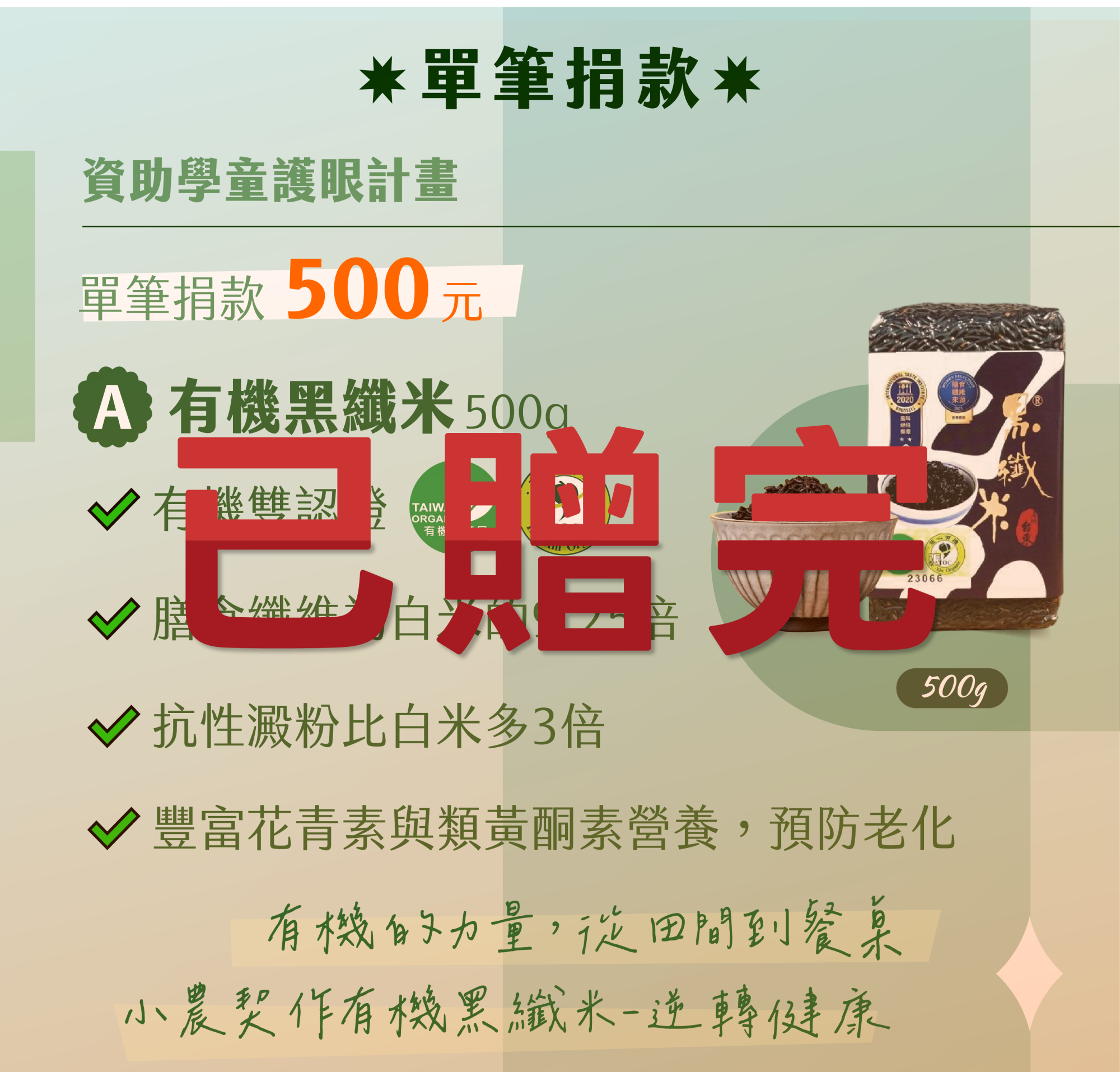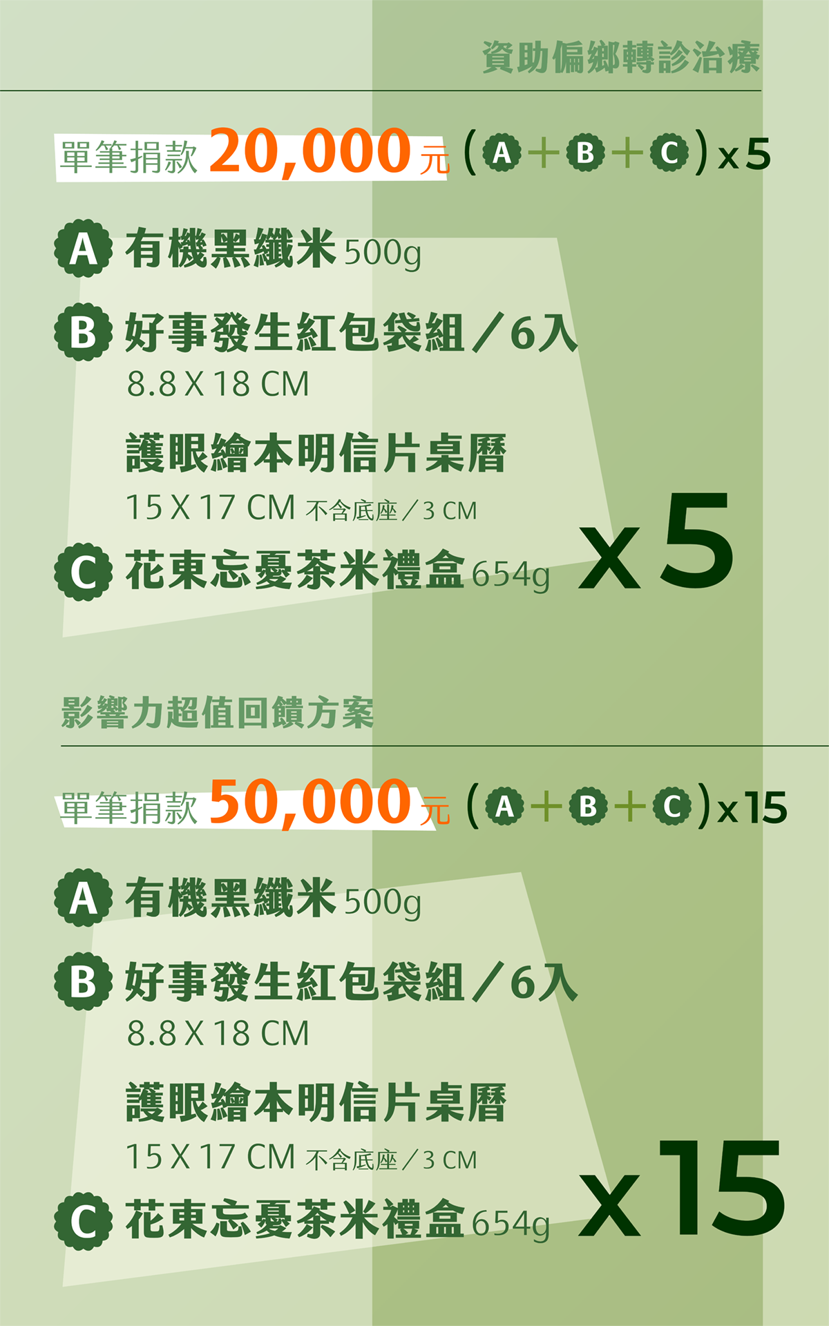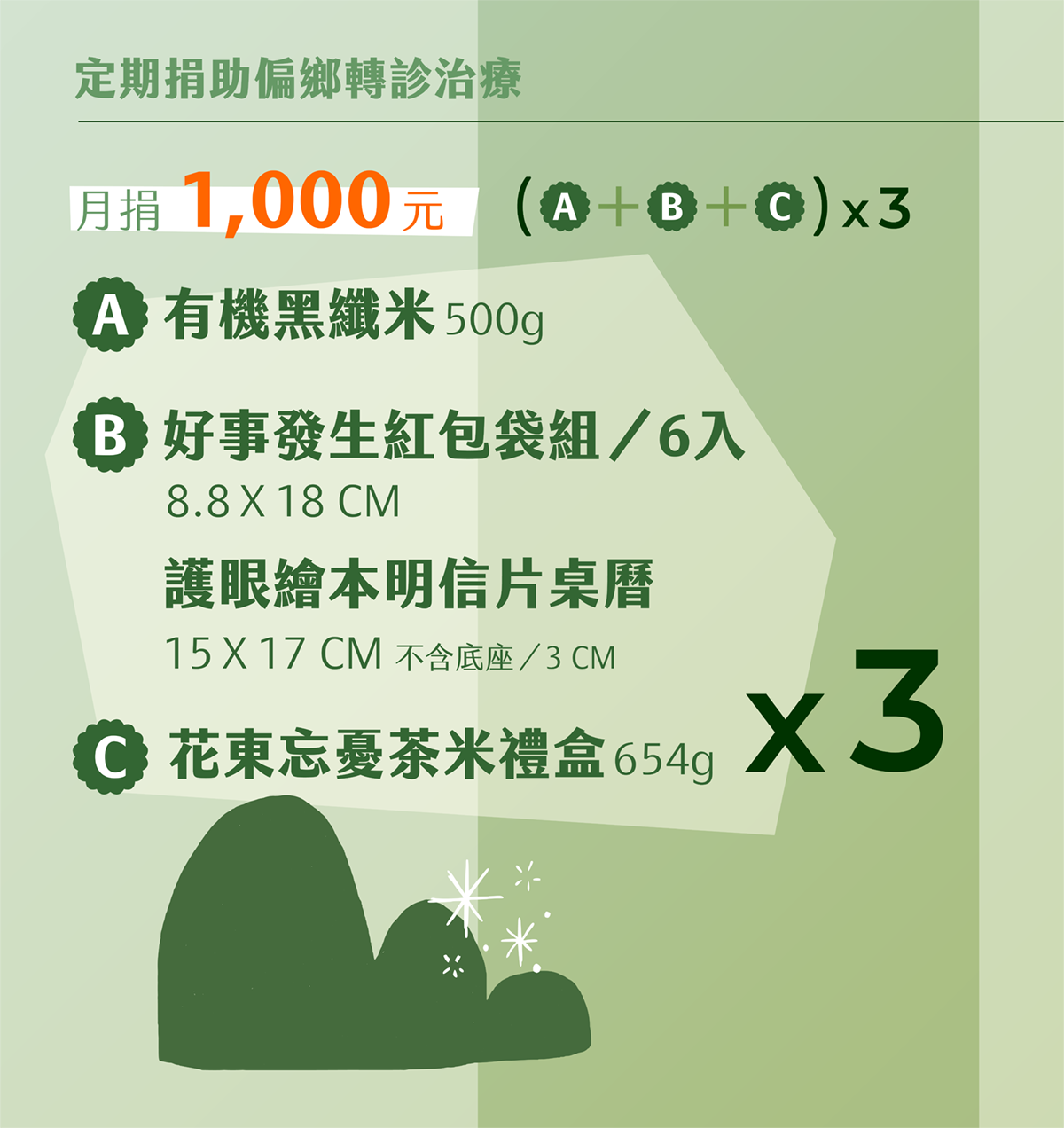 ※ 您捐贈之款項將用於2026年度偏鄉眼科義診服務,提供免費眼睛檢查、配鏡矯治、衛教宣導、醫療轉診服務。