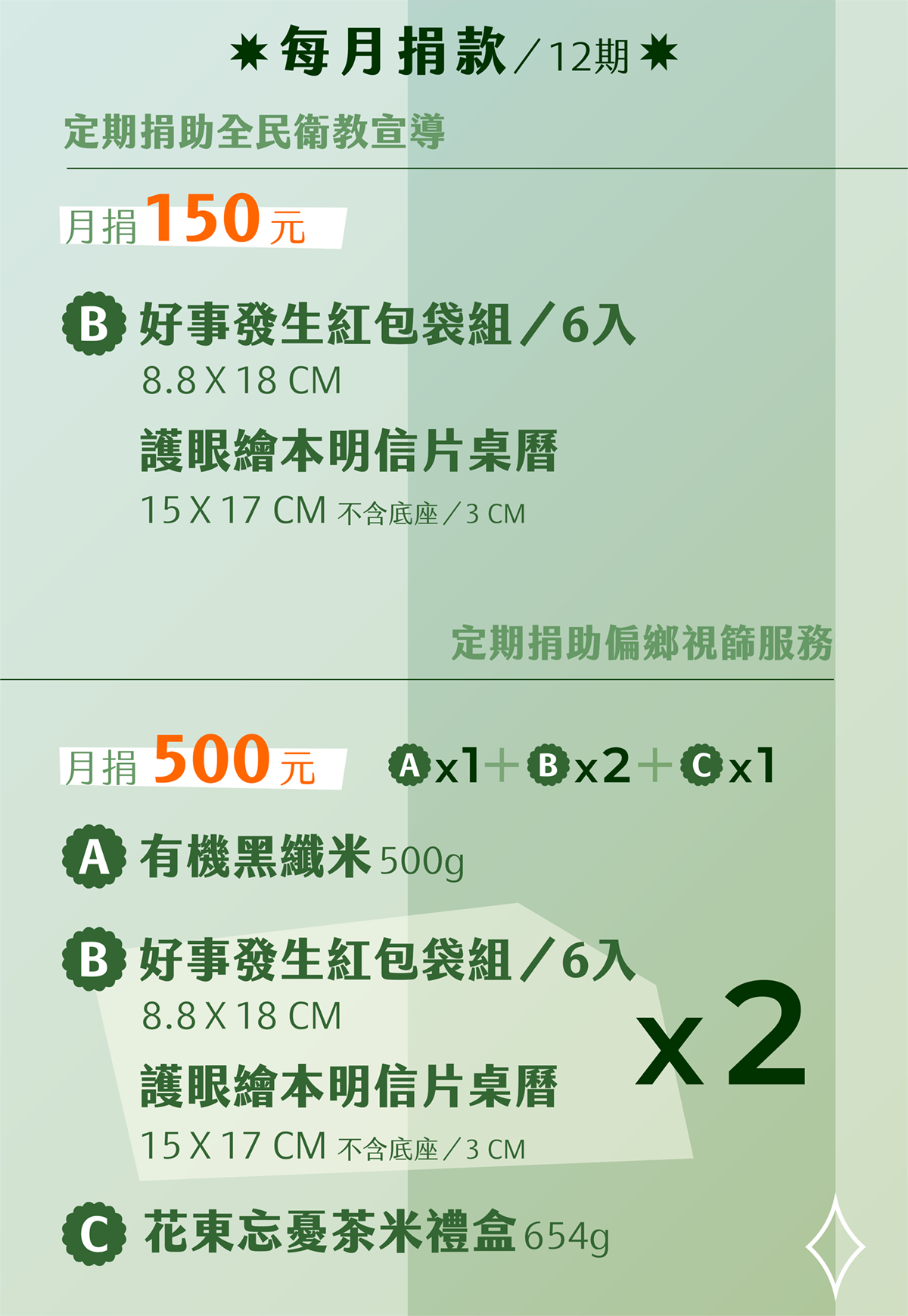 感謝您捐款支持,與防盲一起捍衛每個人看得見的權利,讓偏鄉義診不間斷