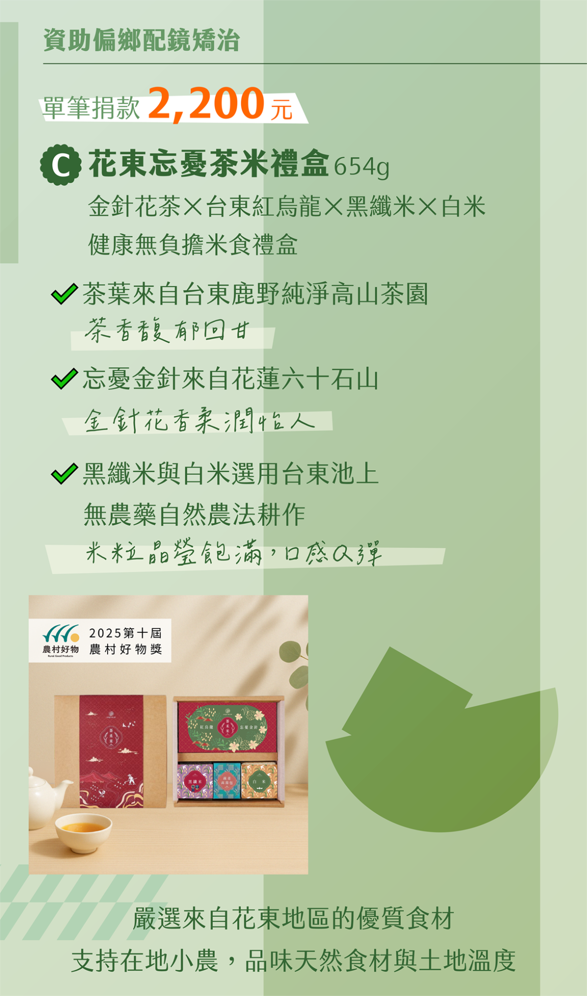 偏鄉擁有獨特的風土與生命力。我們與台東在地小農「源天然」合作,特選蘊含土地與山嵐清香的池上有機黑纖米、忘憂茶米禮盒——以這份來自大地的富饒,溫暖您的善意。